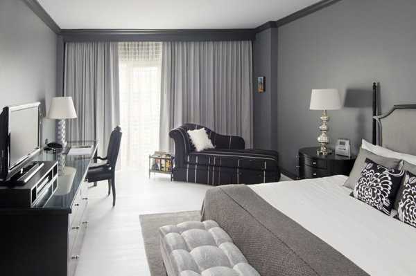 Серый цвет в спальне создает ауру спокойствия и умиротворения.