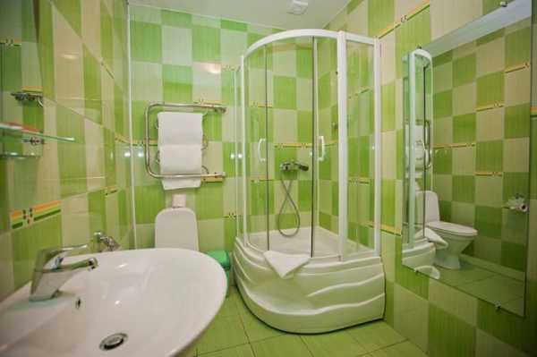 Сочетание белого с зеленым подходит также для оформления ванной комнаты