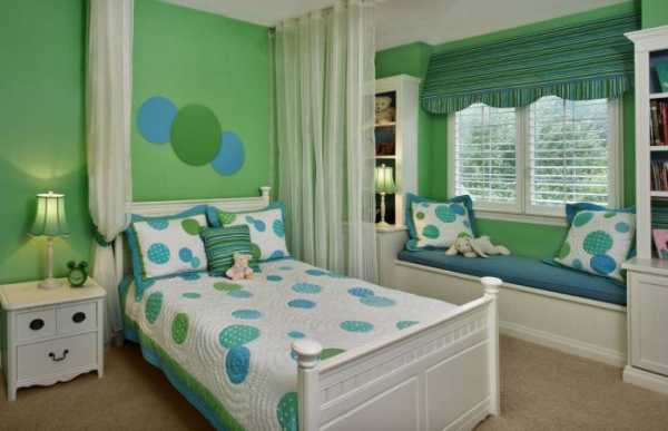 Внимание! Если остановиться на насыщенном зеленом цвете, то белый все равно сгладит его интенсивность, поэтому комната будет иметь спокойное оформление.