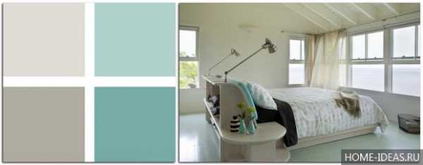 Эта комбинация наводит мысли на солнечные пляжи и отдых на море. Для такого интерьера лучше брать за основу бирюзовый, мебель подойдет светло-серого цвета, ее можно разбавить ярко-бирюзовым подушками или другими декоративными элементами этого же цвета. Такой интерьер больше подходит для гостиной, спальни, кухни и ванной.