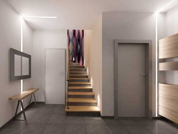 Так как в коридоре или прихожей почти никогда нет естественного освещения, то в таком случае там обязательно нужно установить несколько ярких лампочек и повесить большое зеркало. Также рекомендуется белый потолок и минимальное (либо полное отсутствие) контрастных цветовых сочетаний.