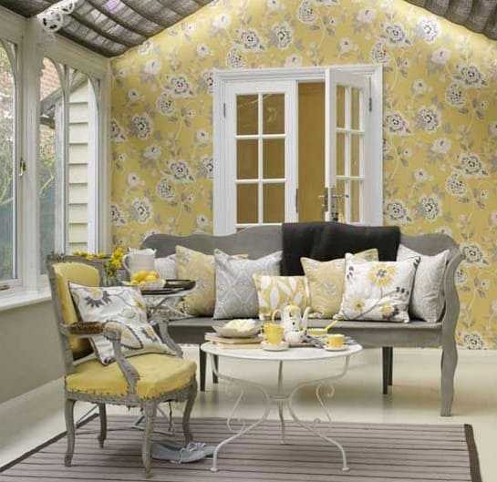 Серо-желтое сочетание в разных стилях интерьера