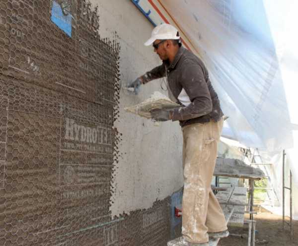 После подготовки поверхности и закрепления на ней армирующей сетки происходит нанесение штукатурки в несколько слоев. Чтобы правильно нанести состав на поверхность, следует рассмотреть особенности создания разных слоев: