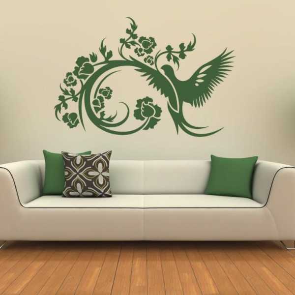 Причудливые цветочные орнаменты могут быть любой формы, размах изгибающихся веточек ограничивает лишь Ваша фантазия.Если ваша душа хочет творчества, то используйте необычные аппликации для украшения помещения с помощью них. Шаблоны в виде геометрических орнаментов помогут сделать обстановку индивидуальной.