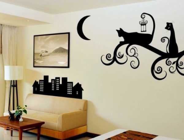 В каждом жилье есть самая большая комната или гостиная, где любят собираться все домочадцы, друзья семьи и гости. Следует подходить с особой осторожностью в выборе изображений для холла. Тщательно взвесить все сюжетные линии картины. Любят рисовать на стене в квартире своими руками фигурки кошек, составлять композиции из цветов и растений. Можно изобразить очертания профессиональных интересов или увлечений.