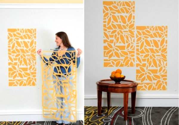 Изготовить штамп самому — несложно. Для этого не нужны какие-то особые знания и инструменты. В процессе обычно используют малярные валики, куски поролона, губку или цветной спрей в баллончиках. Если нет опыта в рисовании, можно найти трафареты (шаблоны) для декора стен в интернете, скачать их и уже распечатывать узор на плотной бумаге через принтер.
