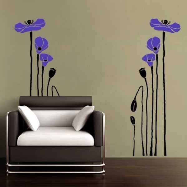 Правильно подобранные цветы впишутся в любой интерьер.Если вы хотите создать стильный интерьер своей комнаты, кардинально поменяв при этом оформление помещения, но оставив всю обстановку в прежнем виде, применяйте трафареты цветов для декора. Они идеально подойдут для создания красивого интерьера в стиле прованса и декора своими руками. Легкие и ненавязчивые узоры в виде цветов роз, ромашек, тюльпанов и маков помогут сделать интерьер оригинальным и индивидуальным.