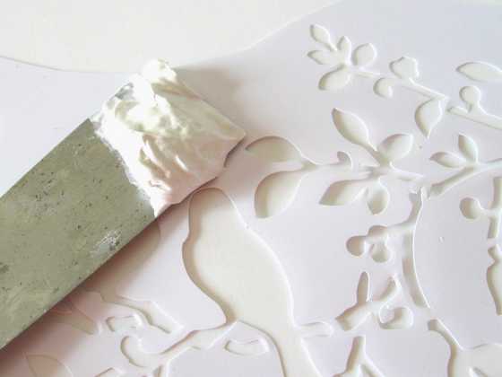 Этот метод нанесения краски через трафарет хорошо подходит для декора поверхности под старину.