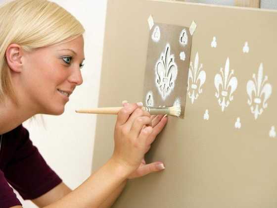 Когда стоит цель украсить поверхность, необходимо обдумать будущую тему рисунка до последних деталей. Вот и пригодятся единственные в своём роде трафареты (шаблоны) для декора. Например, в детской спальной комнате над кроваткой следует изобразить птичек или бабочек. Высшим классом является использование мебели в составе композиции.