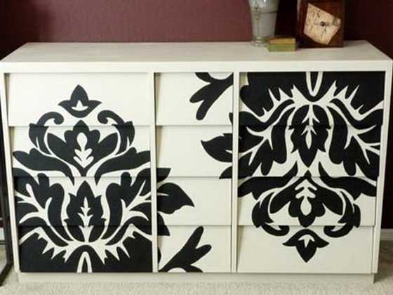 Предлагаем ознакомиться с подборкой фото декора трафаретами различной мебели и домашних предметов интерьера: