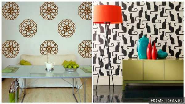 Подберите орнамент, сочетающийся с остальным интерьером, и комната преобразится.Если вы поклонник всего не традиционного и оригинального, вам не стоит даже задумываться об использовании обычных геометрических или цветочных узоров. Лучшим вариантом станут трафареты, на которых нарисованы различные животные, в том числе и кошки. Забавные мордашки станут прекрасным украшением не только стен, но и фурнитуры. С помощью таких трафаретов вы можете украсить не только спальню или детскую, но даже собственный холодильник. Кроме анималистических мотивов вы можете использовать аппликации с бабочками. Если вы не умеете рисовать этих насекомых самостоятельно, используйте готовый шаблон из интернета. Останется только распечатать его, хотя на сегодняшний день дизайнеры предлагают даже готовые виниловые наклейки, которые не придется в дальнейшем обрезать или разрисовывать.