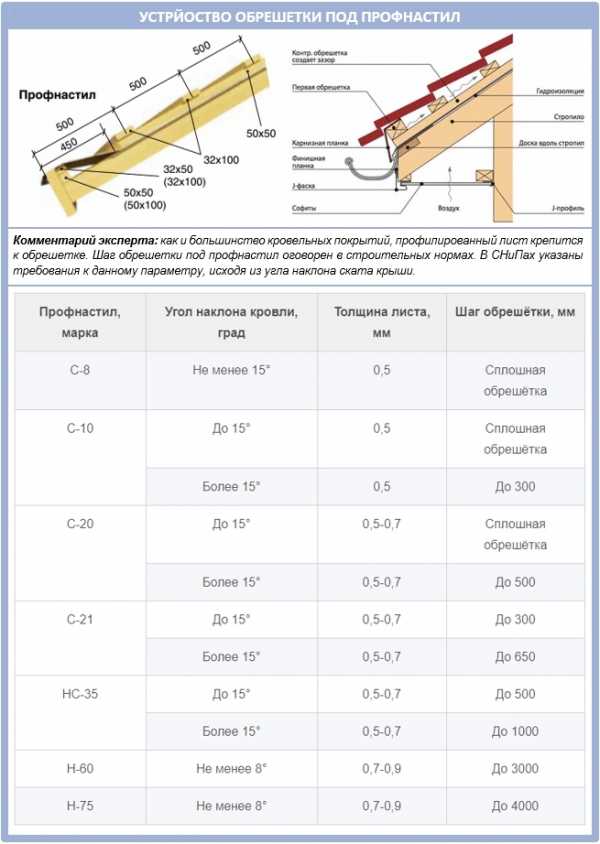как правильно сделать, какое расстояние между обрешеткой под профлист, доска или металлическая обрешетка