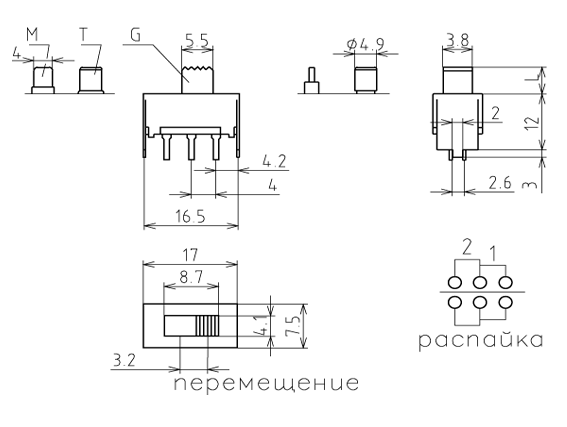 Этот переключатель может быть построен из переключателя по схеме 6/2, для чего устанавливают внешние перемычки.