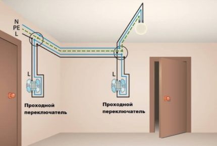 Следует сразу предусматривать электрическую разводку с учетом схемы подключения проходных выключателей.