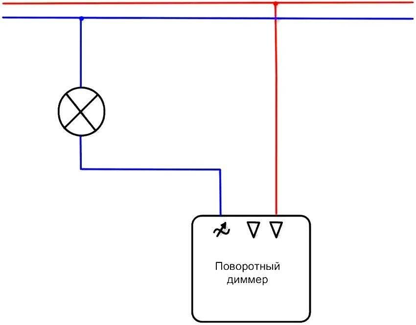 Схема переключателя отличается от схемы разводки электропроводки с обычным выключателем.