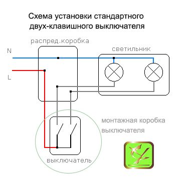 Схема подключения нескольких источников света с двухклавишным выключателем