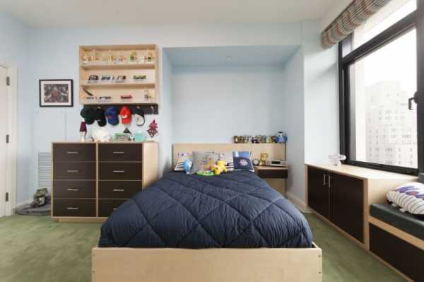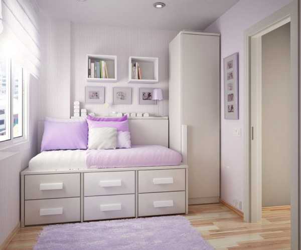 Также в спальне можно организовать гардеробную, что избавит от использования комодом и дополнительных тумбочек. Но для его обустройства у вас должно быть свободно минимум два квадратных метра.