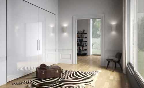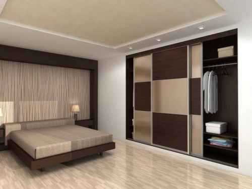 Предпочтительней устанавливать шкаф в интерьере спальни, это позволит исключить необходимость покупки комода и подобных конструкций для хранения одежды. Для гардеробной можно выделить часть спальни, стену, где имеется ниша.