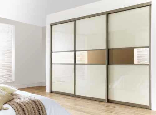 Шкаф-купе ванильного оттенка, хорошо впишется в светлой спальне с балконом.Видео: Варианты шкафов-купе в спальню