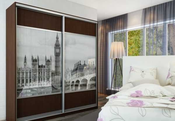 Изображение Биг-Бена на дверце шкафа-купе является потрясающей и оригинальной идеей.Какому виду мебели отдать предпочтение, зависит от личных пожеланий и возможностей покупателя. Главное условие, чтобы шкаф-купе в дизайне спальни выполнял все возложенные на него функции, гармонично вписывался в интерьер и не наносил вред здоровью жителей квартиры. Также адекватный подход и тщательное изучение всех возможных вариантов помогут избежать глубоко разочарования от неправильно сделанного выбора.