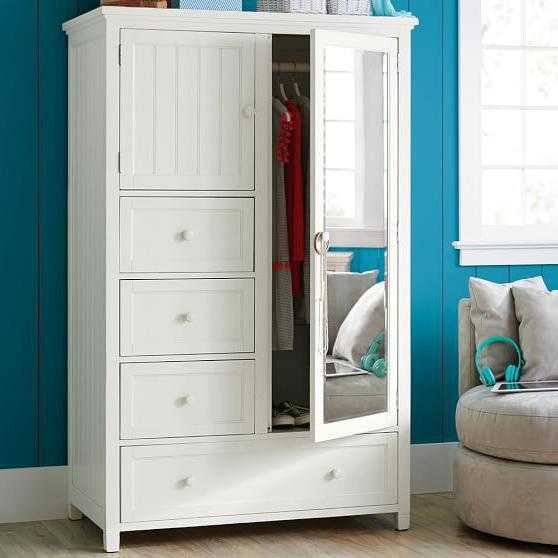 Ну и, разумеется, если вам действительно нужен именно шифоньер, в нем должно быть встроенное зеркало (помните, что высокие зеркала визуально вытягивают силуэт, поэтому такой вариант более приемлем, чтобы разглядеть себя в полный рост).