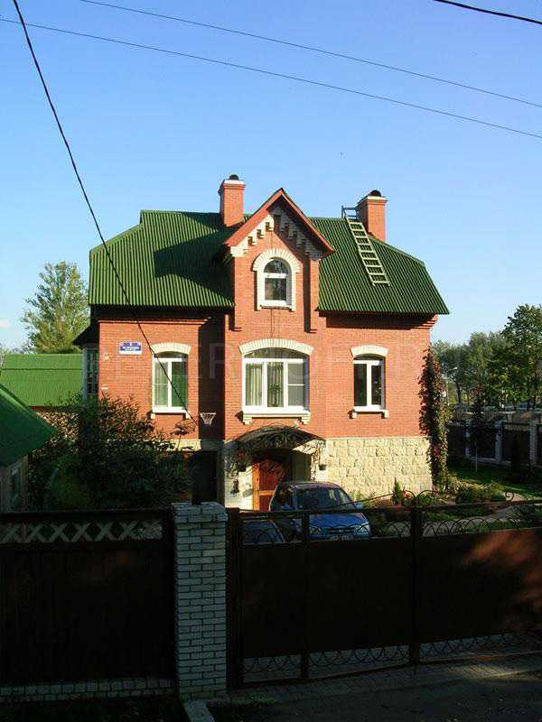 Зеленый ондулин идеально подходит к классическому кирпичному цвету