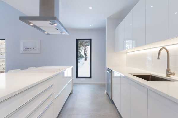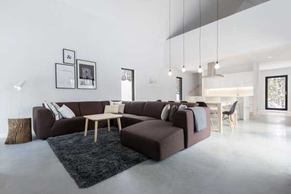 Чаще всего бетонные коттеджи выполняют в стиле хай-тек или индустриальный минимализм, поэтому для них характерно использование самых ультрасовременных технологичных новинок, таких как система «умный дом», климат-контроль, сложная бытовая техника, автономное энергоснабжение.