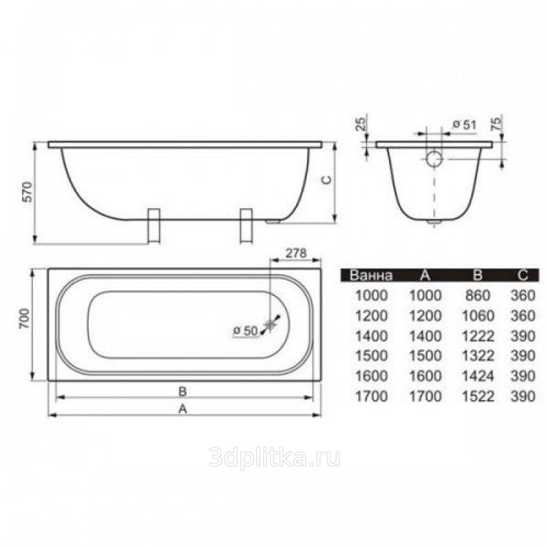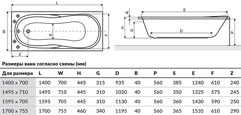 Размеры ванн — budmagazin.com.ua