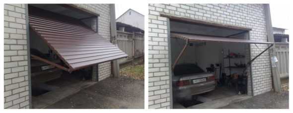 Эти, самые привычные, пока что, конструкции требуют максимального свободного пространства перед гаражом. Зато для обеспечения их работы не нужно сложных шарниров, подъемных механизмов и других дорогостоящих деталей – необходимо лишь полотнище, рама и петли для навешивания.