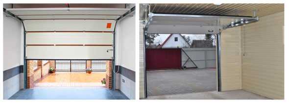Подъемные уже постепенно теряют позиции на рынке, так как их конструкция – цельное полотно – менее удобна в использовании, хоть принцип открывания и напоминает секционные. Секционные, хоть удобны и практичны, требуют для притолоки и направляющих по бокам дополнительного места.