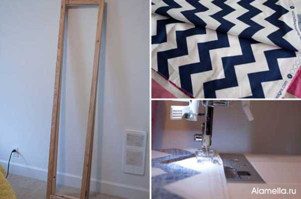 Ткань натягивается на раму и закрепляется степлером. Можно с изнанки оформить ширму наличниками из тонких полос ДВП. Кстати, совсем не обязательно заполнять полотна ширмы тканью. Вместо нее можно вставить в рамы листы ДВП или тонкой фанеры (или даже очень плотного картона), оклеенные предварительно обоями в тон стен или, напротив, контрастными. Только следите, чтобы не получилось излишней пестроты.