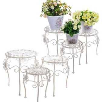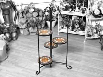 - Перед приобретением такой подставки важно определиться, сколько горшков планируется разместить в цветочнице. Это является основополагающим фактором для выбора, так как все напольные металлические подставки имеют разное количество посадочных мест.
