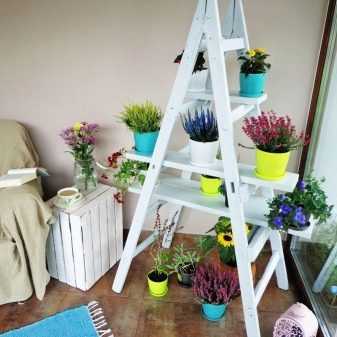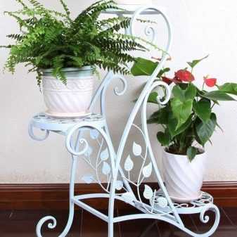- В виде террасы или стойки-лестницы. Несколько этажей (от двух до четырех ступеней) такой цветочницы позволяют сделать красивую композицию из растений. Часто применяют эту подставку в углу комнаты.