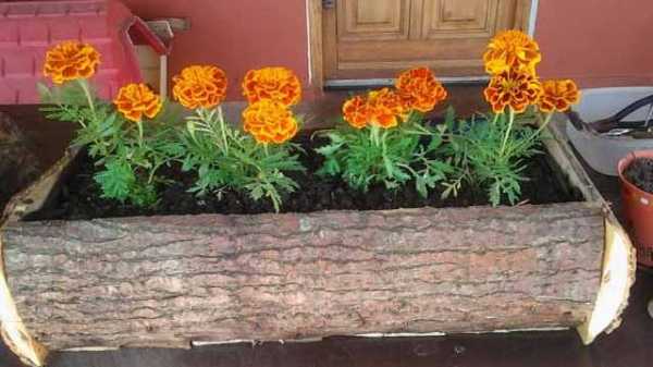 Если у вас нет подходящего бревна такой цветник можно сделать самому из остатков горбыля.