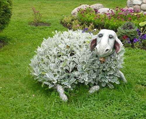В саду красиво смотрятся не только цветы, но и декоративные травы. Посмотрите, как интересно организован этот цветник-овечка.