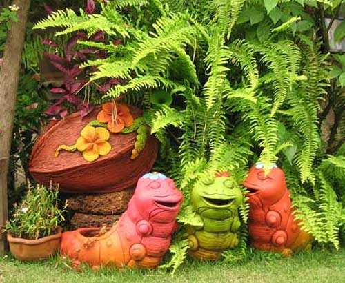 Взять оригинальный цветочный контейнер — это одна из самых простых и эффективных идей. Веселые гусеницы-цветники озарят своей яркой улыбкой весь ваш сад.