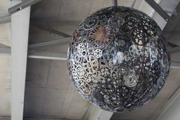 Этот абажур сделан из множества крышек от алюминиевых банок.