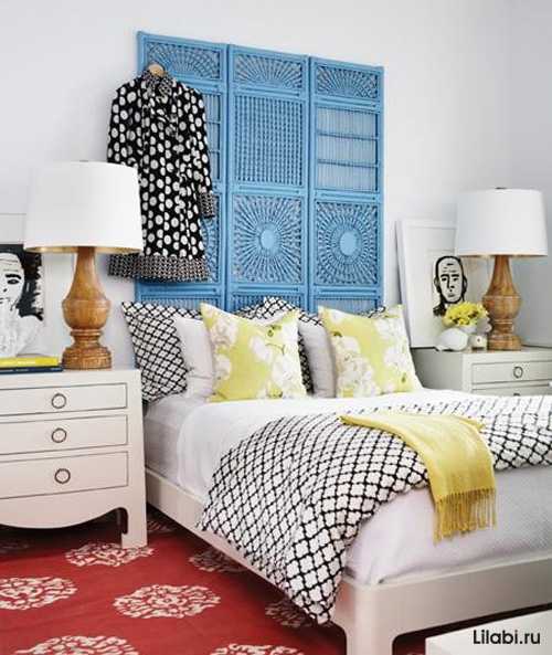 Также ширму в спальне можно использовать как декоративное изголовье кровати (фото ниже).