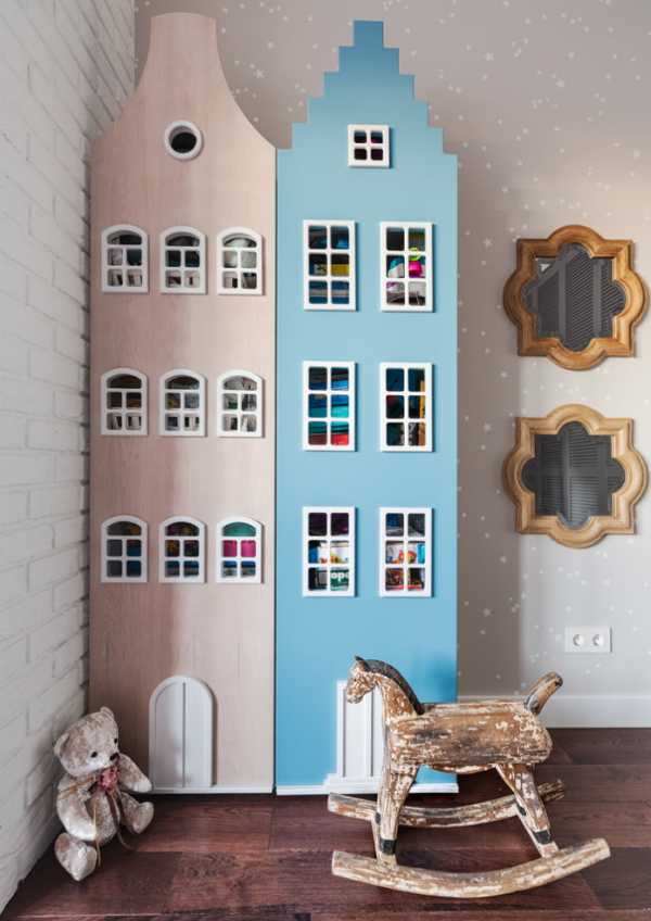 Играя в прятки, у ребенка появится новое место, где его никто не найдет. Внешний вид не должен быть темный лучше светлый с яркими вставками. Двери можно оформить фотопечатью с изображением сказочных героев, которые нравятся ребенку.
