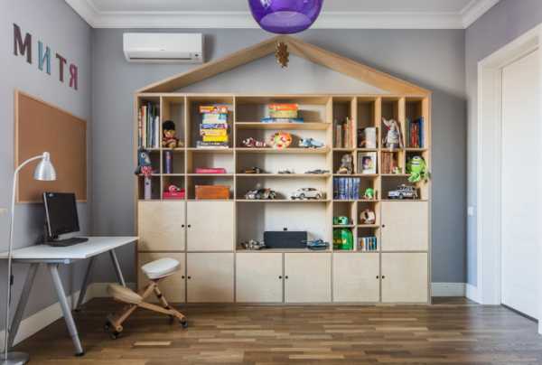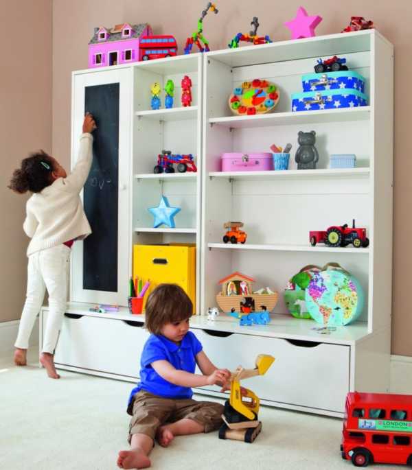 Продумайте наличие и конструкцию ящиков, в которые малыш будет складывать свои игрушки или хотя бы часть из них. Предусмотрите место, где будут хранится другие вещи — книжки, учебники, карандаши и т. п. Если место позволит, то одним таким шкафом вы решите все проблемы хранения.