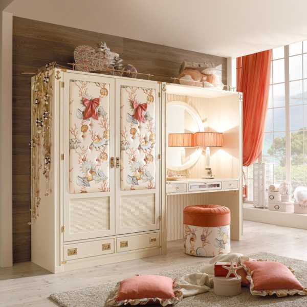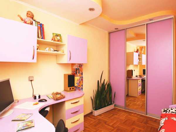 Для девочек школьного возраста лучше остановить свой выбор на зеркальных дверцах, чтобы они всегда имели возможность полюбоваться собой. Необходим этот прием и в том случае, если вы хотите визуально сделать комнату несколько больше.