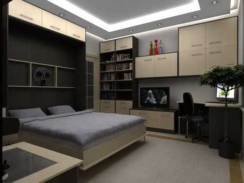 Владельцам квартир-студий подобная мебель поможет организовать спальню и гостиную на одной и той же площади. При этом, дополнив шкаф-кровать рабочим столом из того же материала, получаем компактную мебель и просторную комнату.