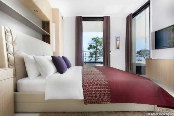 - Стильную кровать, которая располагается таким образом, чтобы вход в комнату оставался свободным.