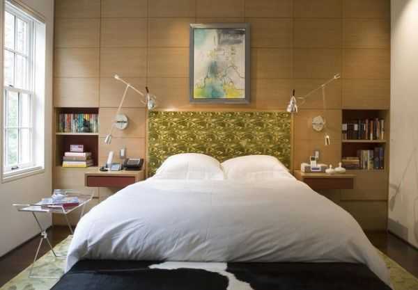 Этот компактный вариант лучше всего подходит для небольших спален. Однако хозяевам следует запомнить, что в дальнейшем невозможно будет его переставить.