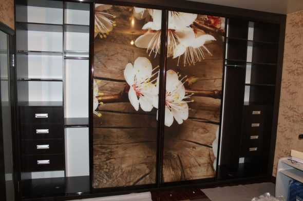 - Фотопечать. Если вы включите в проект двери с изображением, можете быть уверенными, что гости не оставят ваш шкаф без внимания.