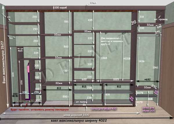 - Составить чертежи шкафа-купе. В проекте указываются все полученные ранее размеры.