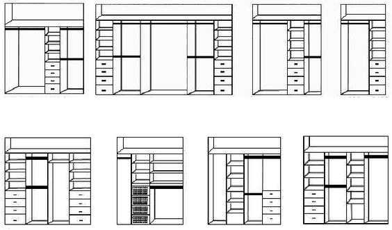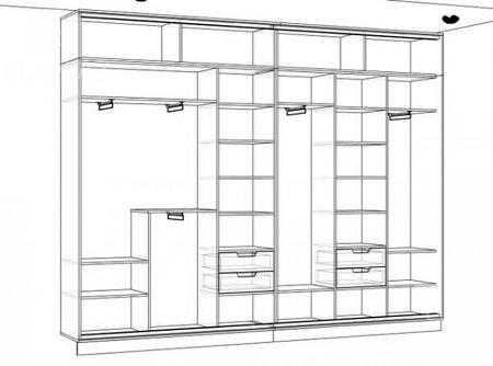 Когда материал буде выбран, хорошенько продумайте устройство шкафа-купе. Речь идёт о том, чтобы разобраться, каким образом будет распределяться одежда внутри, так как наполнение изделия влияет на формирование полок и ящиков. Для этого необходимо составить схему шкафа-купе. На сегодняшний день существуют разнообразные схемы шкафов, вам остаётся лишь выбрать вариант, наиболее подходящий для вашего интерьера. Помимо этого, важна деталировка, которую нужно продумать до мелочей. Позаботившись заранее о распределении места для вещей в шкафу, вы избавите себя от возможных проблем.