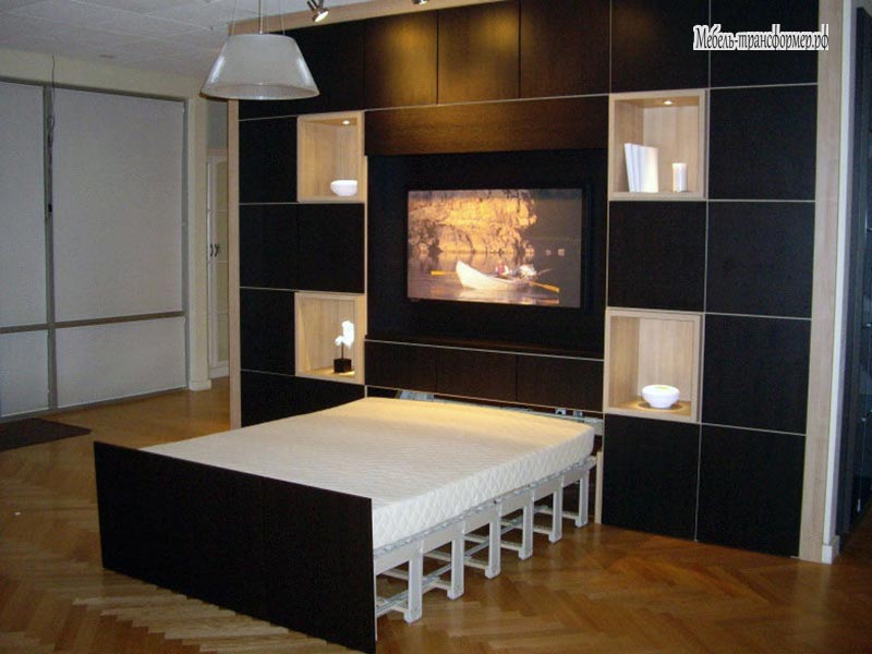 Шкаф – кровать — трансформер представляет собой комфортабельную мебель, которая может использоваться одновременно и как шкаф, и как кровать. Главным преимуществом такой трансформирующей мебели является максимальная экономия места.