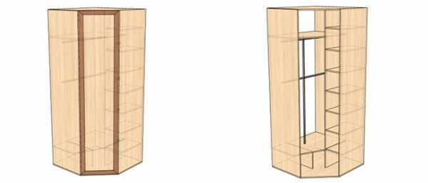 Угловой шкаф-купе с размерами и внутренним наполнением