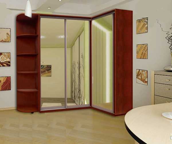 Угловой шкаф купе представляет собой конструкцию, устанавливающуюся между двумя стенками.